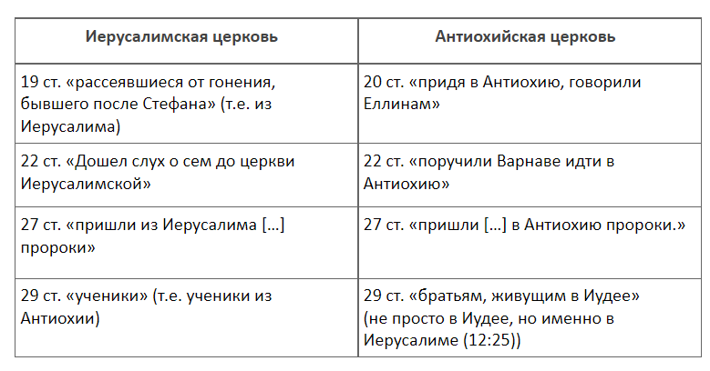 Итак, эти два наблюдения позволяют нам увидеть следующую картину: Лука рассказывает об уникальной Антиохийской общине, а также об отношениях этой общины с другой уникальной общиной - Иерусалимской. Уникальность одной общины в том, что она - первая, состоящая из язычников. Уникальность другой - что она главная, первоначальная.